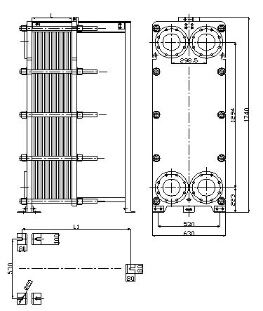 MB15型板式換熱器設備外形尺寸:(僅供參考)